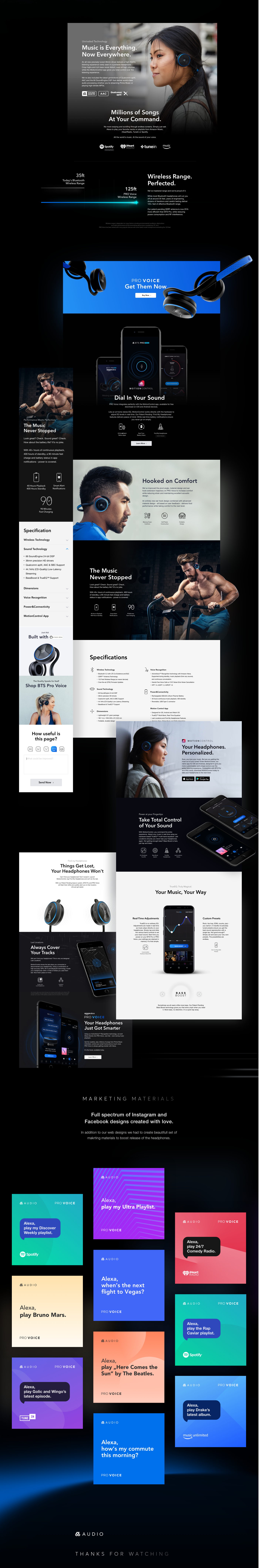 Website Design & Marketing materials for 66AUDIO brand done in 2017 for world's first headphones with Voice Recognition and Amazon Alexa